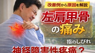 肩甲骨の痛みと指のしびれでお困りだった40代男性の改善例をご紹介。整形外科で異常なしと言われた症状の原因は、首だけでなく上腕・前腕・股関節など全身の硬直とズレにありました。整体眞田流の視点から原因と改善方法を詳しく解説します。