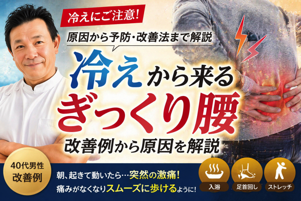 今回は、冷えがきっかけとなってぎっくり腰を発症された40代男性のお客様の改善例をご紹介しながら、その原因と予防法について解説します。