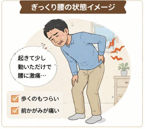 - 今朝、起きて少し動いた際にぎっくり腰になった