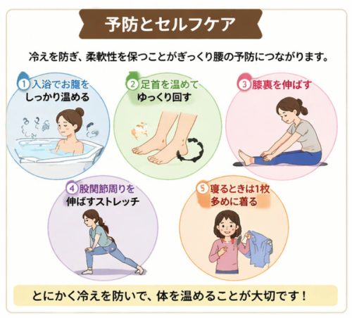 冷えによる硬直、血流の低下、股関節や腹部のこわばりが積み重なり、最後に腰へ症状として現れるのです。