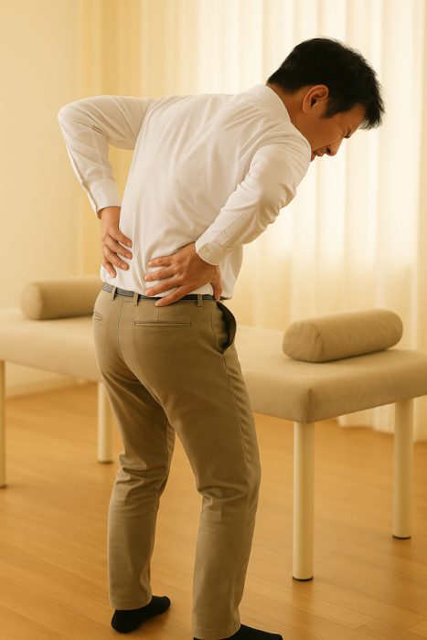 朝の少しの動作をきっかけに、急に腰へ強い痛みが出てしまったケースです。