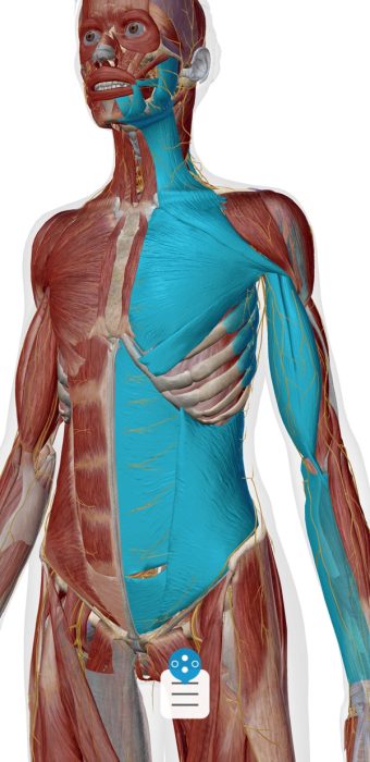 - 首から鎖骨、肋骨、そして腹筋群まで