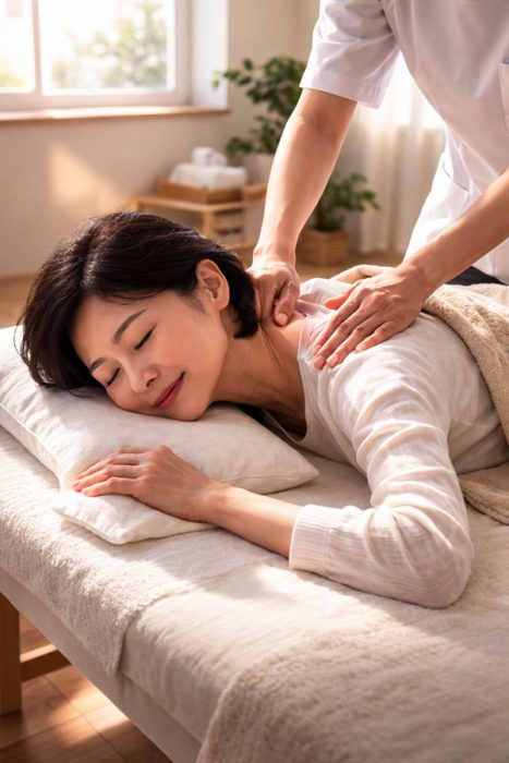 - 最終調整: 背中の硬直と背骨の歪み・ねじれを、優しくゆっくりと調整します。