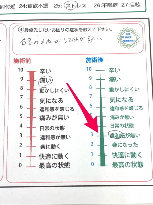 施術後は、痛みが無くなり、違和感もなくなったとのこと。